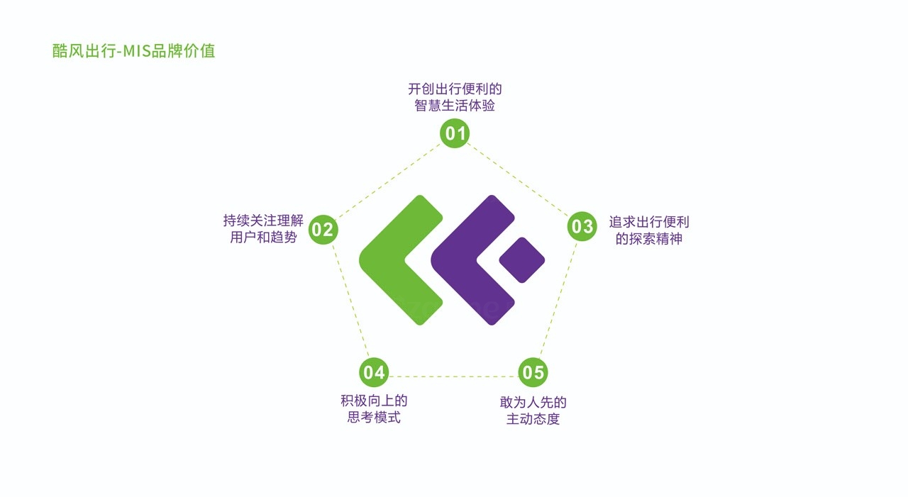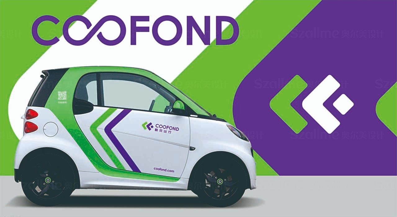 酷風(fēng)出行是一個(gè)以車(chē)共享業(yè)務(wù) 為主打的自主品牌,為了突顯競(jìng)爭(zhēng)力、與同行形成差異。在品牌形象設(shè)計(jì)過(guò)程中,借鑒其名英文名稱一"COOFOND” 中的首字母"CF” 創(chuàng)作元素,全新的品牌識(shí)別設(shè)計(jì)力求高品質(zhì)的共享汽車(chē)生活, 整體色調(diào)清新簡(jiǎn)約,平易近人,投射創(chuàng)新、年輕、動(dòng)的品牌形象,以反映獨(dú)特的品DNA及理念,加強(qiáng)品牌與顧客的情感聯(lián)系。