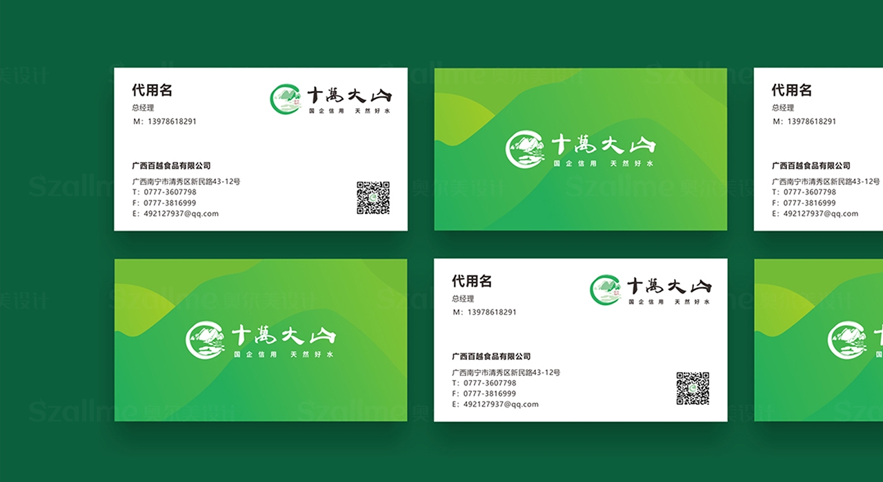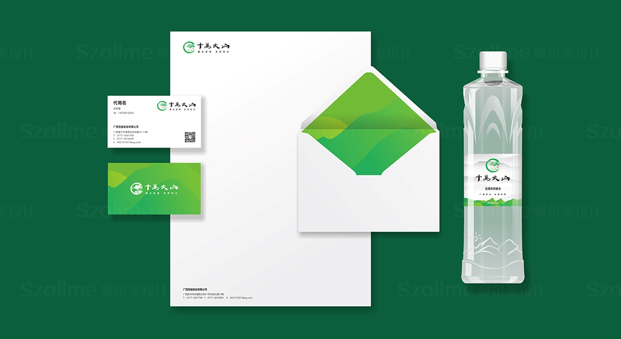 在對十萬大山產品進行深入的了解與研究后,我們根據根據其產品特性,強調十萬大山的綠色生態,純潔干凈,符合企業基本屬性,標志采用十萬大山獨有的“十萬大山”作為設計元素,同時結合“大山”、“水流”寓意蒸蒸日上、生命源泉,突出十萬大山取天然十萬大山而成的純凈大山水之意。