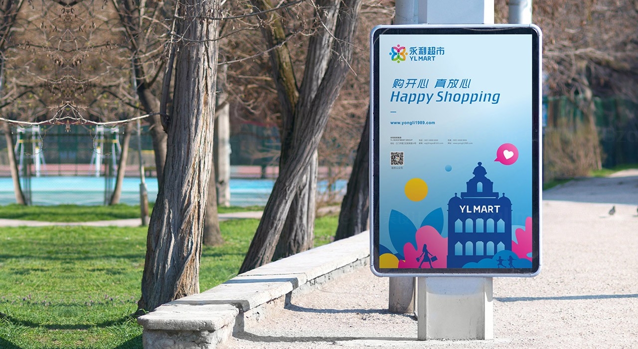 永利超市保利店是一個具有江門特色的形象店,在品牌視覺設計中,我們用了著名的文化遺產碉樓、舊火車站、塔等做設計創意元素,通過排版組合的圖形設計,將永利超市保利店的形象更加鮮明和特色。