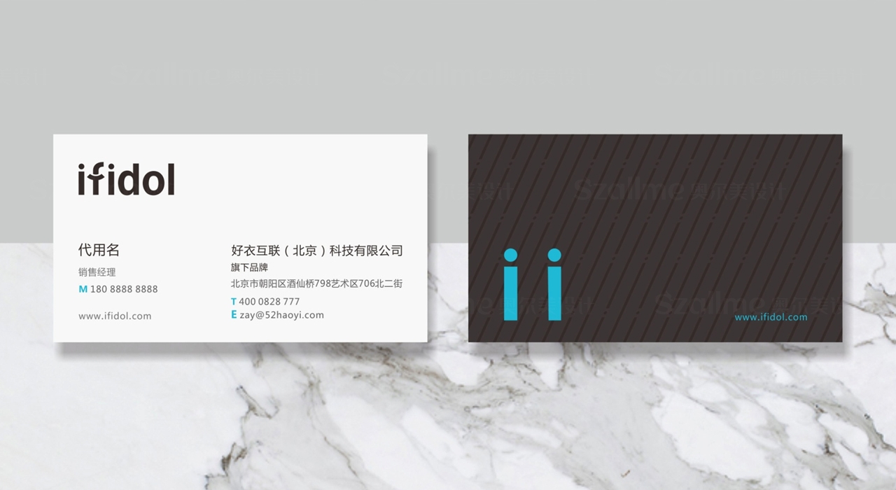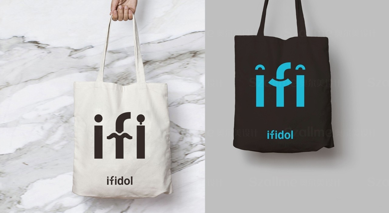 標志采用ifidol英文簡稱"ifidol" 進行創作,通過情感關聯將字母"i” 和"i”的造型巧妙結合,視覺上呈現出微笑的表情。