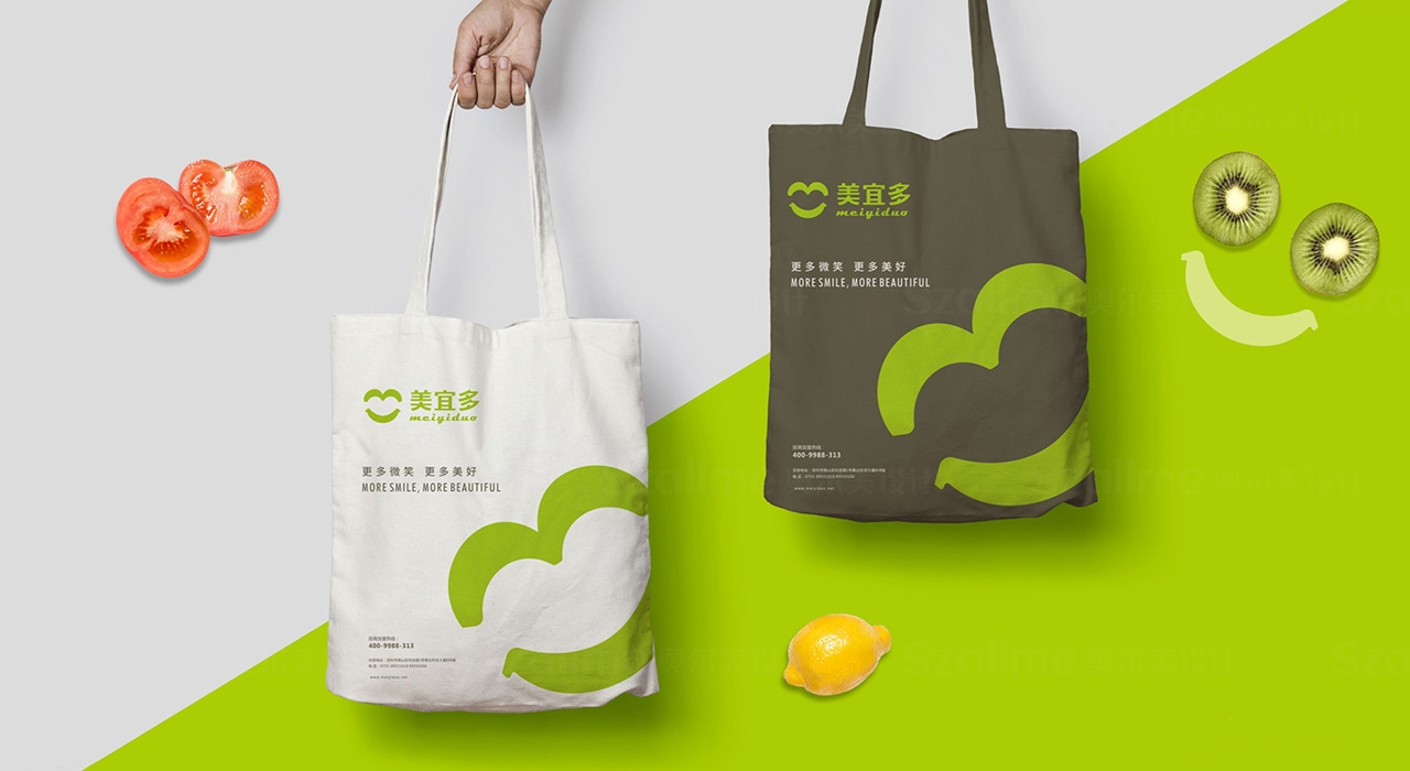 隨著美宜多連鎖超市的發展壯大,原有的品牌形象也要符合發展戰略的需要,這時,美宜多品牌需要升級,打造一個有品牌個性的視覺形象系統。在原標志的思路中對其品牌標識進行優化升級,延續其“M+微笑”的品牌理念,標志在視覺.上更加圓潤飽滿更有親和力,營造出健康、自然、微笑、時尚、舒適、清新的購物環境。中心部分是以“心”形,體現美宜多品牌堅持以“誠心、真心、健康”為經營理念,為消費者提供一日三餐的優質食材。