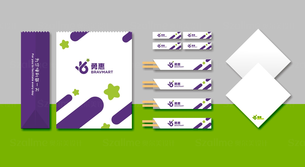 勇惠是一個以零售為主打的便利店品牌, 然而其原有的形象缺乏個性,終端形象較為落后,店面吸引力不足,因此難以突顯競爭力、與同行形成差異。奧爾美在勇惠品牌的改造過程中,標志是塑造勇惠便利店形象、創造品牌無形資產的核心元素,借鑒其名英文名稱一"Bravmart"中的首字母“B” 創作元素,同時融入OK的手勢,代表我們的美好生活態度,品質好、口碑好、讓生活更美好,五角星的元素體現我們星級服務,全星體驗,傳遞快樂。