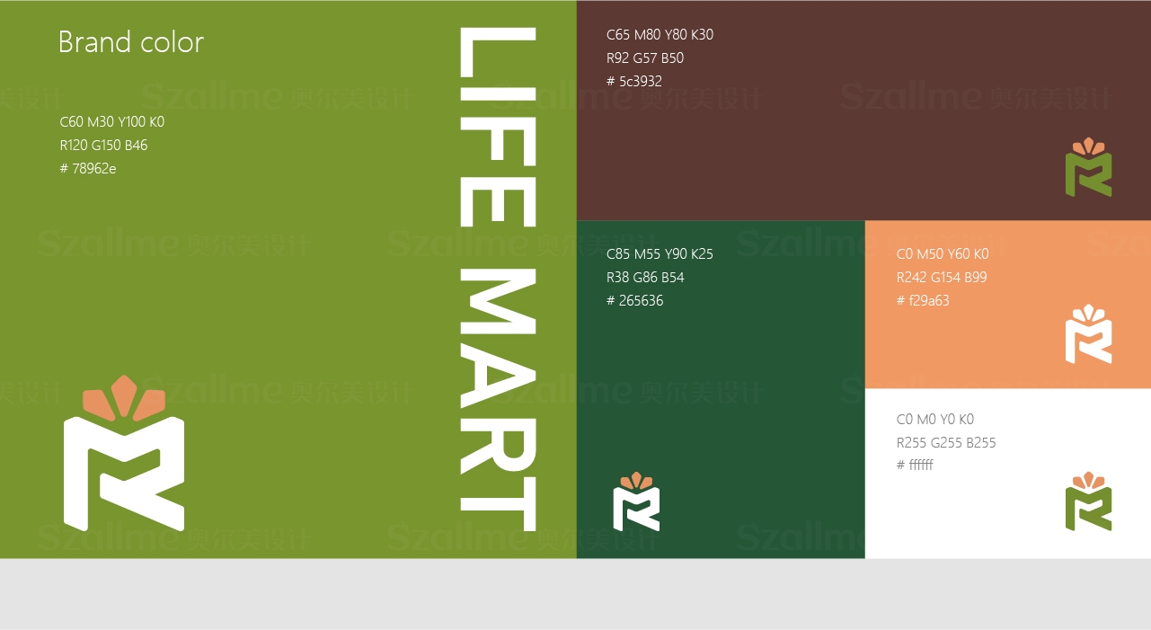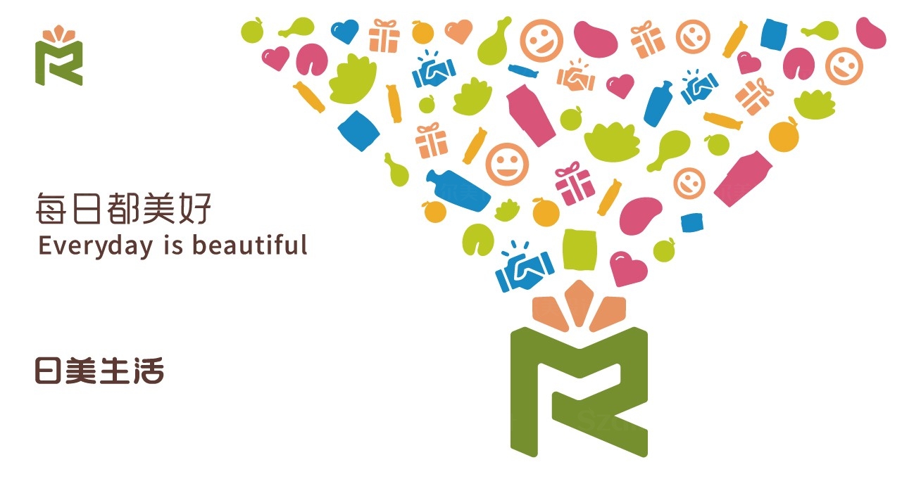 語言文字是最早的符號類型,也是應(yīng)用最廣泛的符號,能記住文字或者字母再好不過。LOGO以字母RM為設(shè)計圖形,加強(qiáng)與品牌主體日美生活超市名稱的聯(lián)系,強(qiáng)化LOGO的獨有性,同時突出年輕化,更具有朝氣與活力。